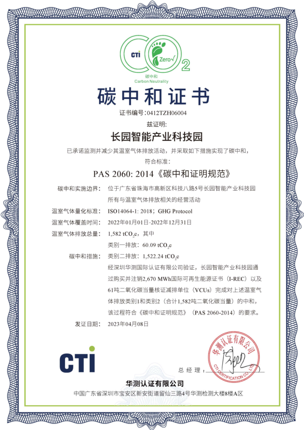 近日,mile米乐集团科技集团位于珠海高新区的“mile米乐集团智能产业科技园”完成了2023年度运营层面的碳中和认证工作,这一重要成就标志着该园区已连续两年实现碳中和目标